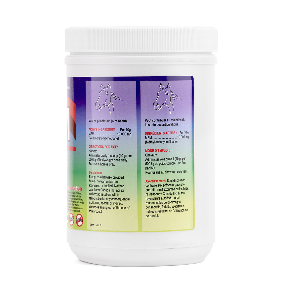 Methyl-Sulfonyl-Methane Powder. MSM is a derivate of dimethyl sulfoxide that has been claimed to promote healing and recovery from disease, athletic injuries, and stress. Each g contains: