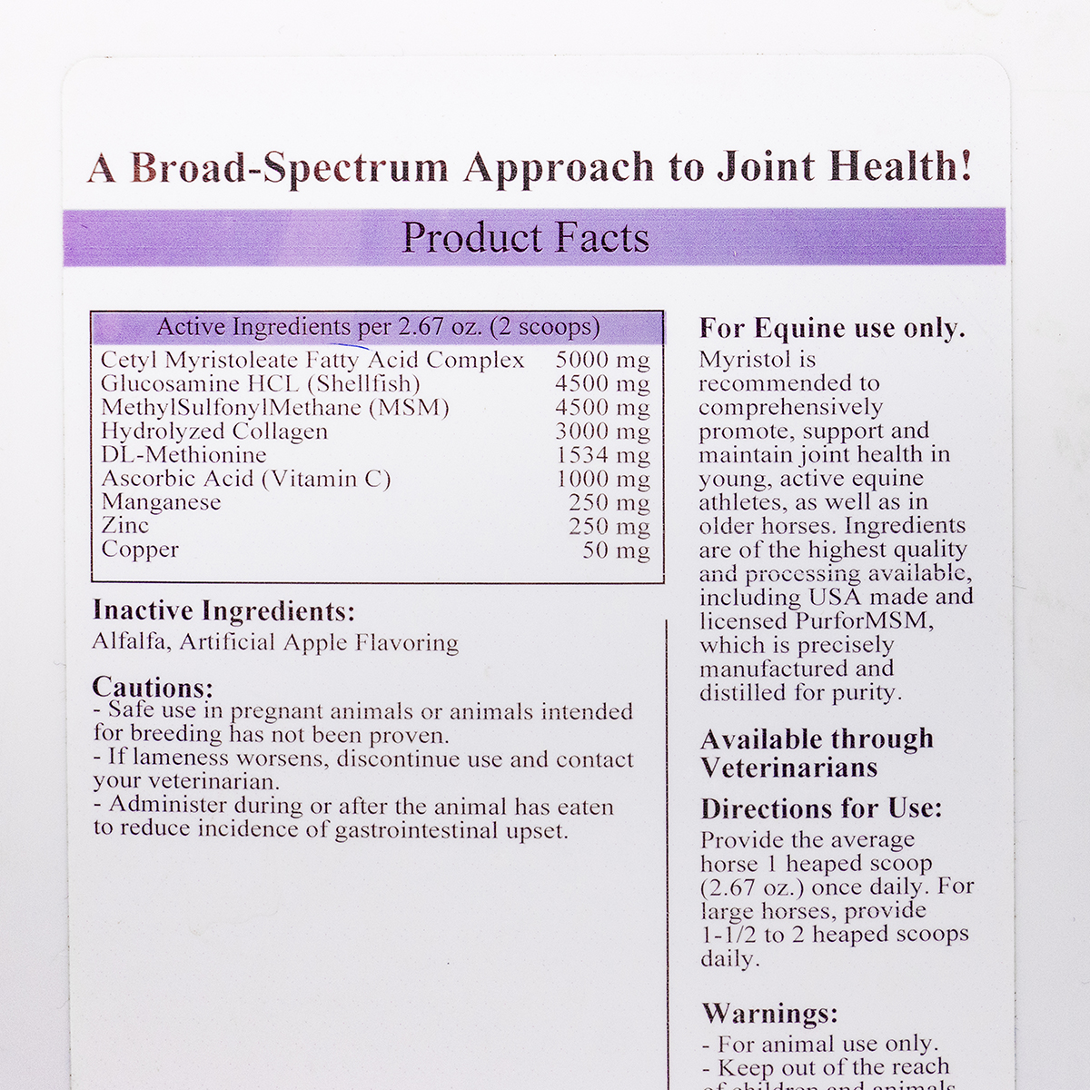 Myristol joint and health supplements for horses can help bring back freedom of movement and an improved quality of life. Whether your horse is an equine athlete, subjected to intense pressure on the joints during competition, or a beloved companion, consider prophylactic use of Myristol to provide extra care and support for the entire equine joint structure.