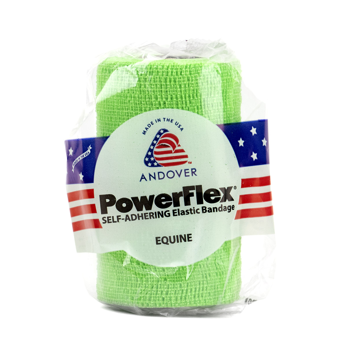 Powerflex is a cohesive flexible bandage manufacture Neon Green for equine use.