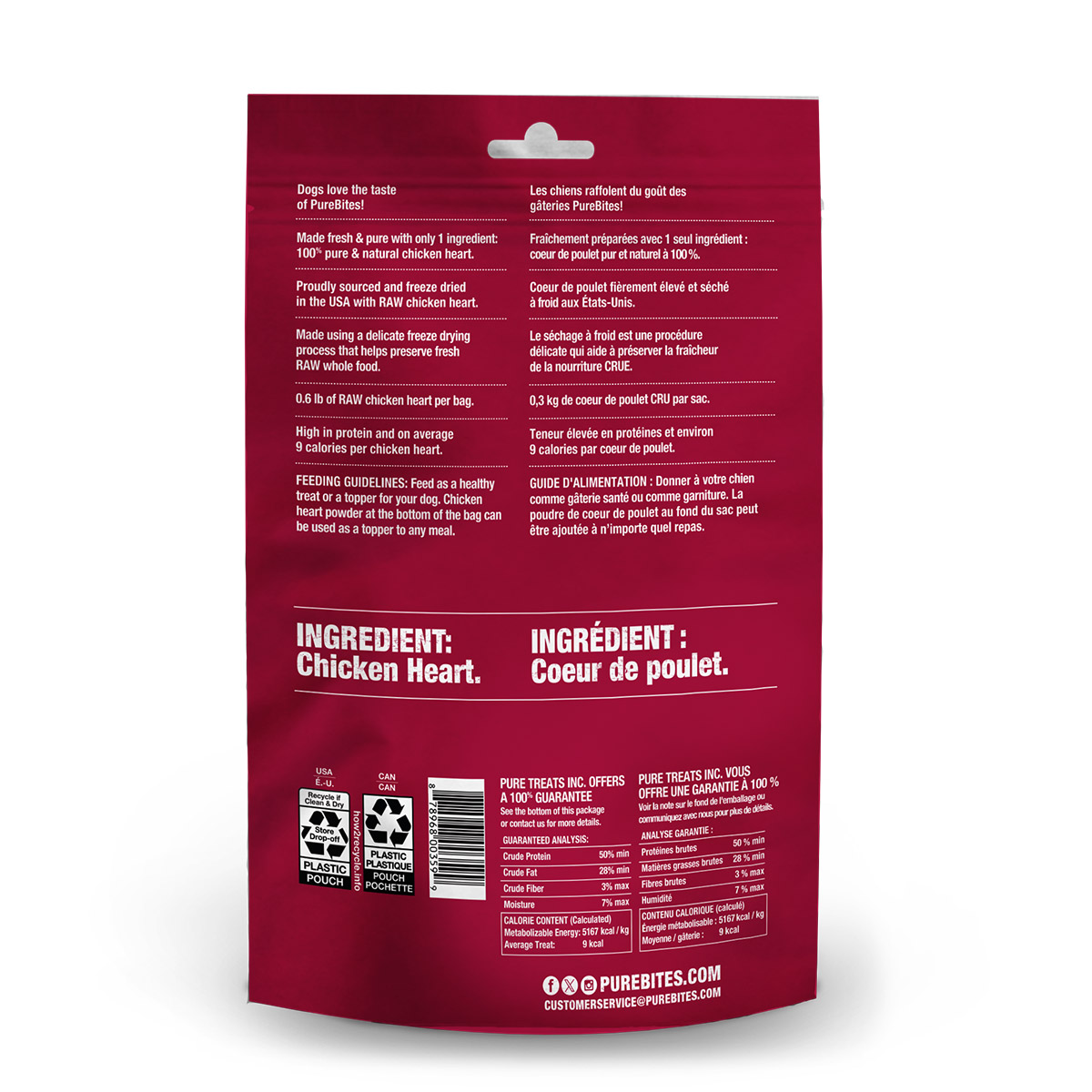 Go ahead, look at our ingredients; made with only 1 simple human grade ingredient: 100% pure chicken heart; sourced and freeze dried in the USA, then packaged and perfected in our very own Canadian kitchen; a great high-value treat, topper, or training aid for your dog